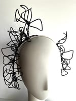 Black wired flowers headpiece fitted to a tulle covered narrow headband