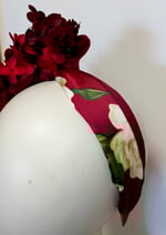 Pretty burgundy flower headpiece fitted to a satin covered headband