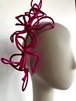 Fitted to a tulle covered narrow headband and designed to be worn on the right hand side of the head