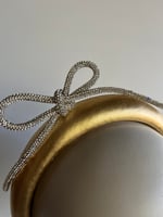 Gold padded headband w diamanté bow.