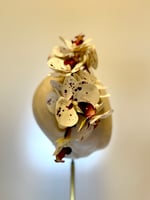 Fitted to a tulle covered headband and designed to be worn on the right hand side of the head