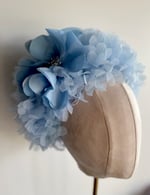 60's inspired- masses of pale blue organza petals with a large pale blue flower.