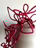 Rose pink silk wired flowers fitted to a tulle covered narrow headband and designed to be worn on the right hand side of the head