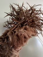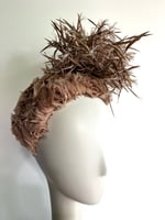 Taupe fabric covered bandeau topped off with a taupe biot feather explosion